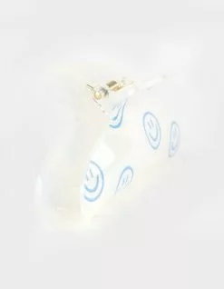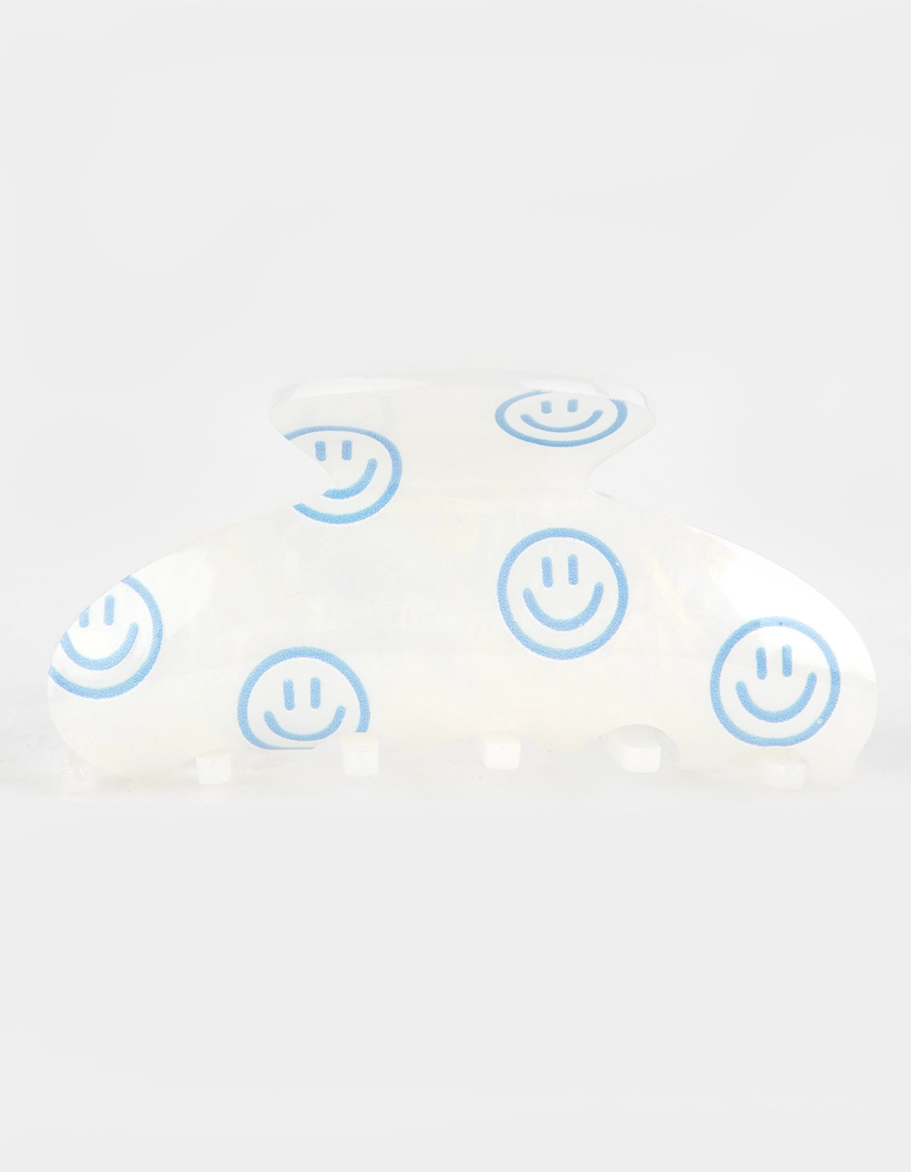 Full Tilt Smiley Face Claw Hair Clip. Allover smiley face print. Plastic claw clip. Approx. length: 4”. Imported.