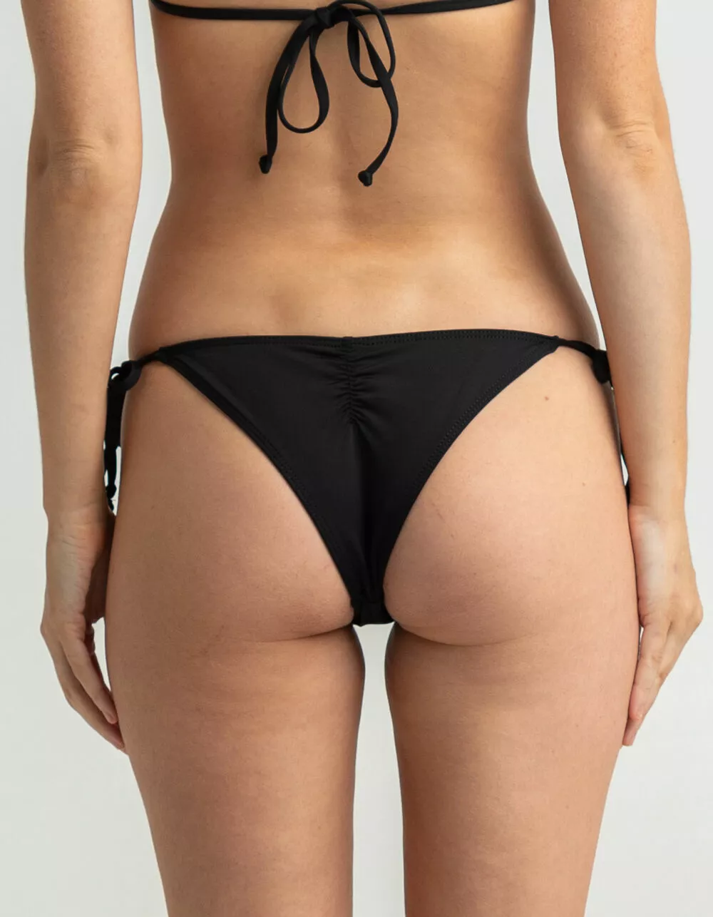 Full Tilt Tie Side Bikini Bottoms. Solid color. Cinched back design with adjustable tie sides. Mid rise waist. Skimpy coverage. 83% Nylon 17% Spandex. Hand wash. Imported.