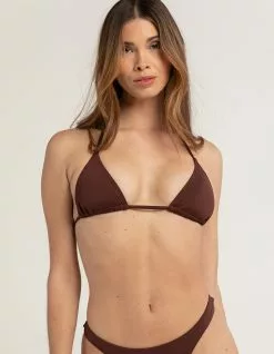 Full Tilt Triangle Bikini Top. Solid triangle bikini top. Adjustable halter neck and back ties. Removable padded cups. Fully lined. 83% Nylon, 17% Spandex. Hand wash. Imported.