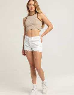 Full Tilt Stripe Muscle Tank Top. Allover stripe print. Ribbed crew neckline. Cropped. Fitted silhouette. Self: 83% Cotton, 17% Polyester. Contrast: 55% Polyester, 45% Cotton. Machine wash. Made in USA.