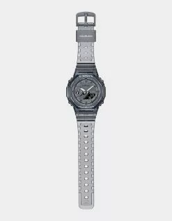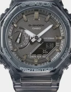 G-Shock GMAS2100SK1A Watch. Metallic translucent designs in a choice of colors for versatile watches that pair with any outfit, all year round. Index markings treated with a half-matte vapor deposition finish bring to life the clear metallic look. Case size (L× W× H): 46.2 × 42.9 × 11.2 mm. Shock Resistant. Carbon Core Guard structure. 200-meter water resistance. Approx. battery life: 3 years on SR726W X 2. Mineral Glass. 140 to 205mm. Neobrite. World time. Stopwatch. Timer. Alarm/hourly time signal. Light. Full auto-calendar (to year 2099). 12/24-hour format. Hand shift feature (Hands move out of the way to provide an unobstructed view of digital display contents.) Regular timekeeping: Analog: 2 hands (hour, minute (hand moves every 20 seconds)), 1 dial (day). Digital: Hour, minute, second, pm, month, date. Imported.
