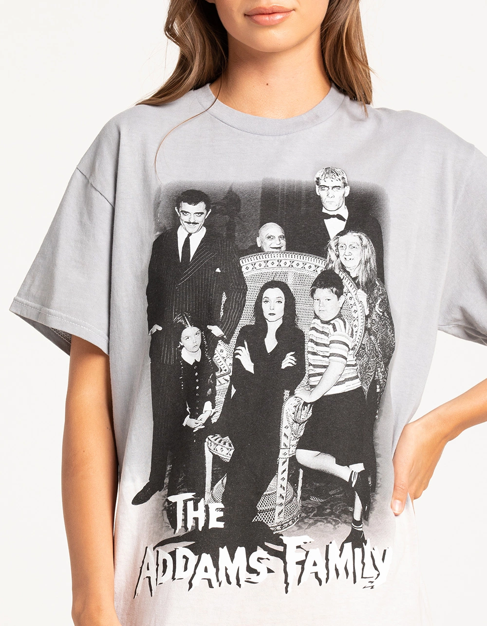 Adams Family Boyfriend Tee. Large graphic screened on front. Ribbed crew neckline. Short sleeve. Oversized fit. 100% Cotton. Machine wash. Imported.