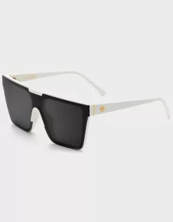 Heatwave Visual Clarity Sunglasses. Get ready to run the show and set the vibe – The Clarity is Heat Wave’s answer for a ladies specific single lens frame, featuring a bold design that comes pre-loaded with style and attitude that takes cues from our best-selling unisex single lens frames such as the Lazer Face and Quatro. Features include a flat, front mounted single lens, integrated brow bar and a barely there matching nose piece for accent. Fit is no different than all other HWV Gold models and is easily adjusted with arms that include a wire core embedded within the polycarbonate frame. The Clarity is topped off with a classy high-luster polish and shiny gold details throughout. Simply put, from the pool to professional, the Clarity has the power and personality to carry you through summer and beyond. Includes microfiber bag. 1.9 mm front mount lenses. 5 barrel metal hinges. Imported.