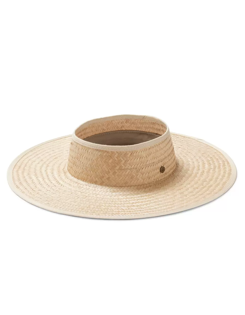 Hemlock Hat Co. Lucia Visor. Born from earth and hand woven by artisans. The Lucia is a crownless visor with an oversized brim treated with no stiffness for a lightweight structure and flexible shape. Directly from the earth alongside our artisan partners, Hemlock Hat Co. brings you handmade quality you can trust. Brim length: 4.3″. Grosgrain brim and crown binding. 100% Palmilla Straw. Imported.