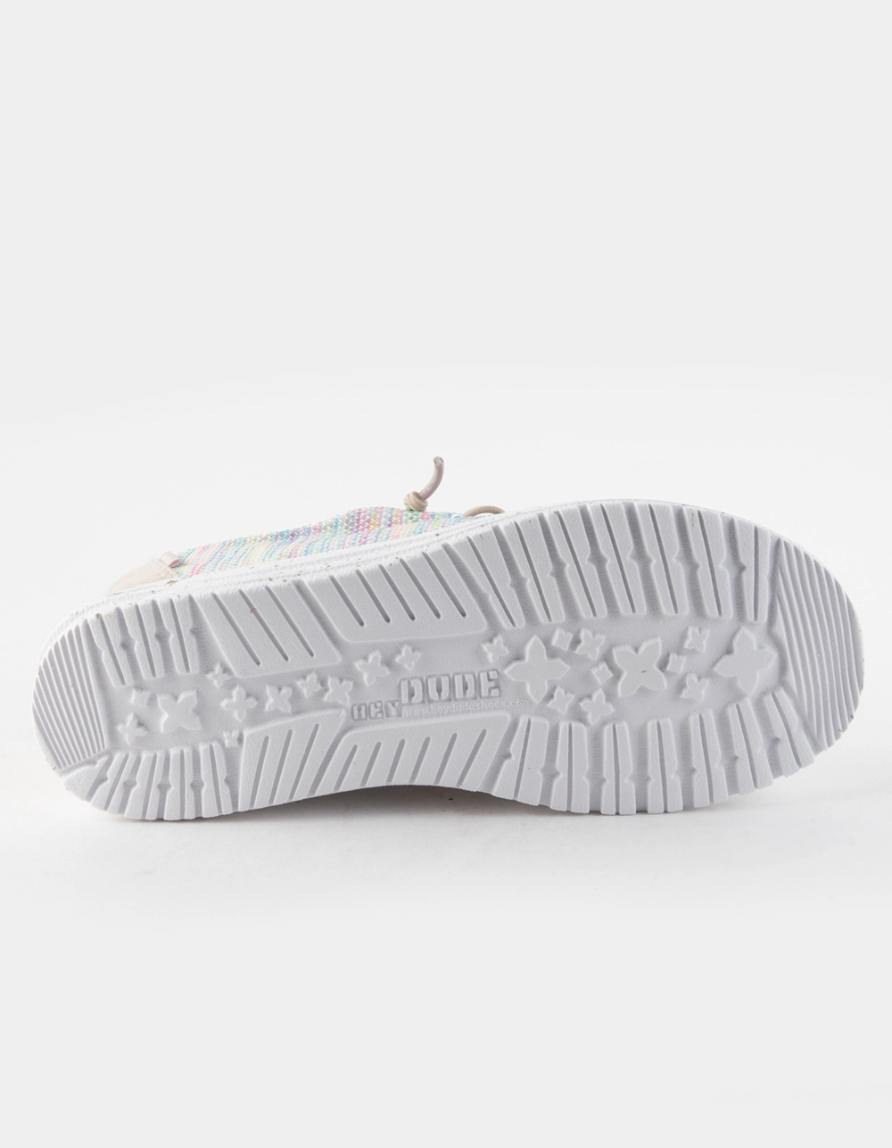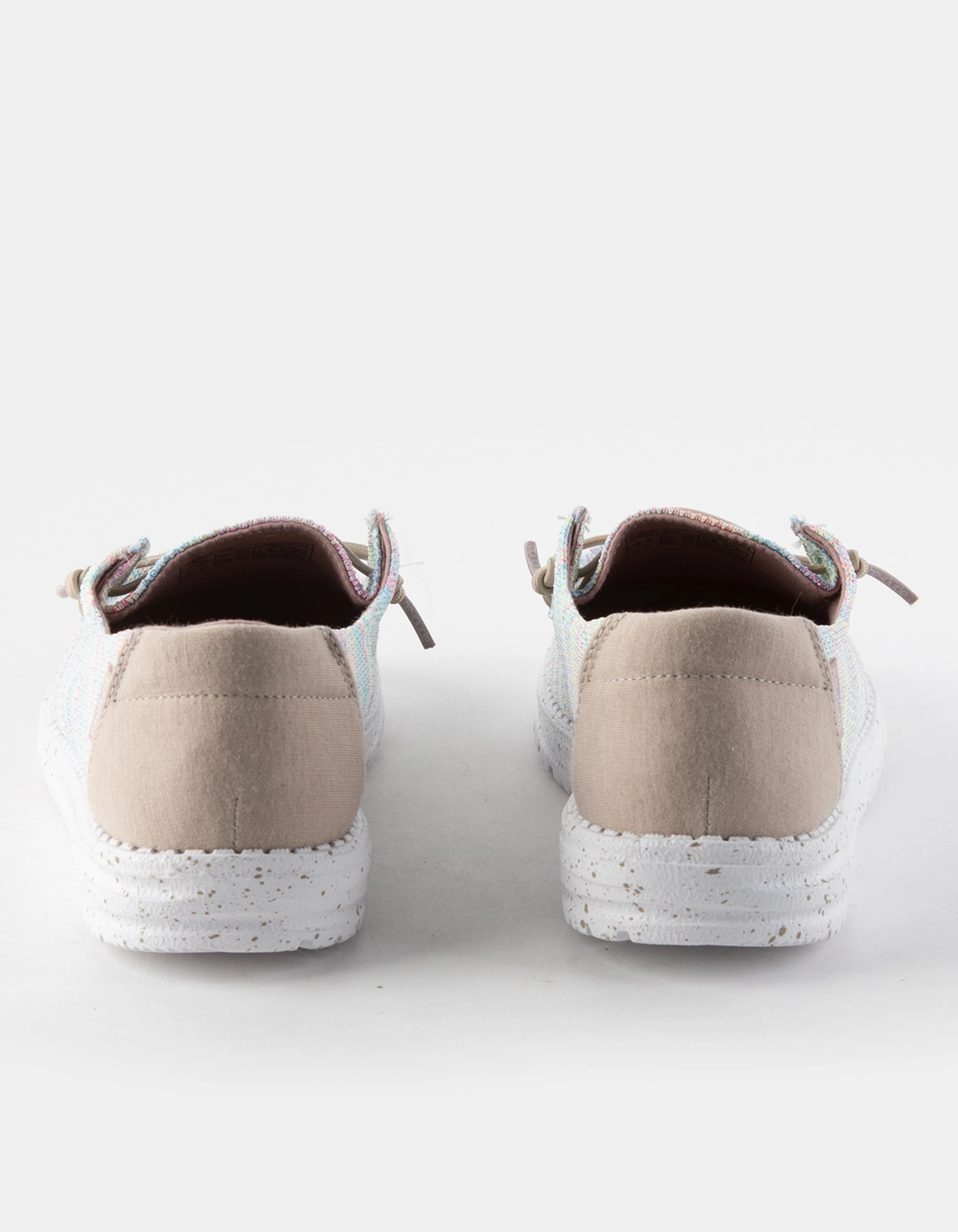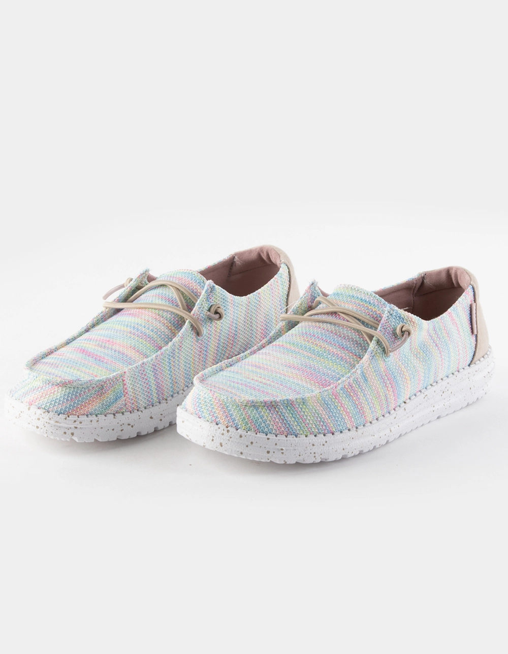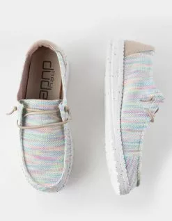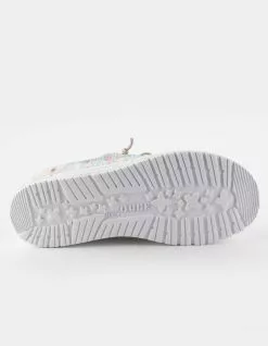 Hey Dude Wendy Sox Shoes. Our most popular moc meets sock-like comfort. The Wendy Sox collection showcases our classic style constructed in a stretch-polyester fabric without compromising support, made to hug your foot throughout. Built on an ultralight outsole and designed with our easy-on system, featuring no-tie elastic laces. Easy. breezy, on the go. Flex & Fold Technology. Stretch-polyester blend upper with contrasting heel detail. Contrasting, stretch-cotton lining. Easy-On System with elastic laces. Ultralight outsole. Leather-lined, removable insole. Easy to wash, air dry. Imported.