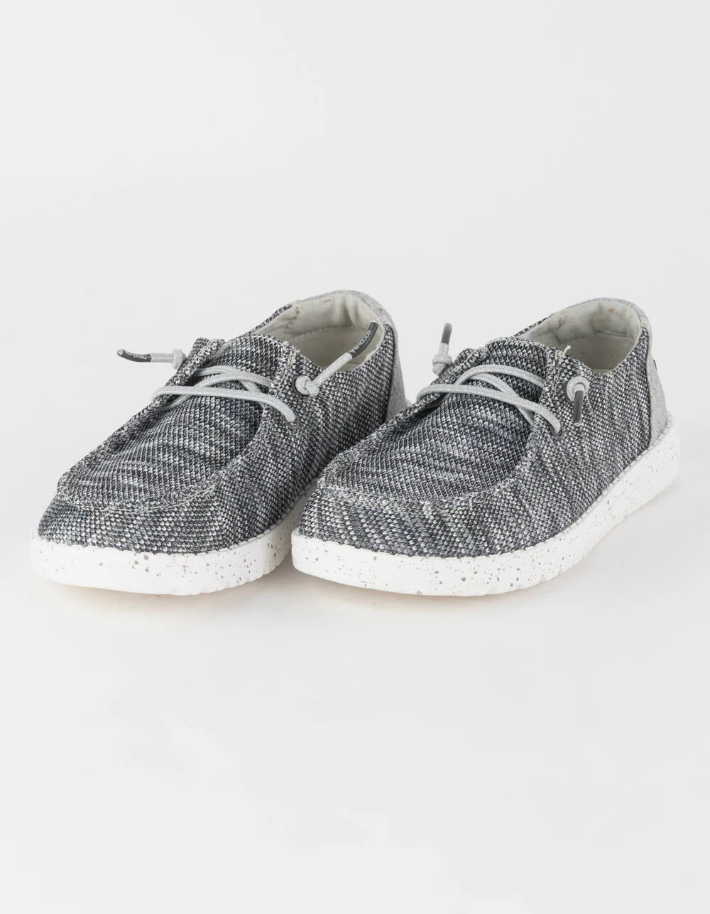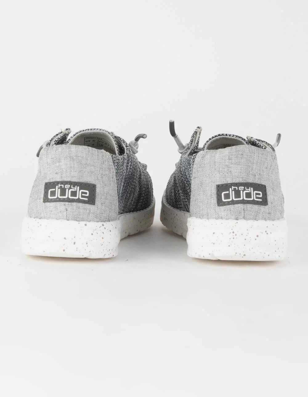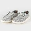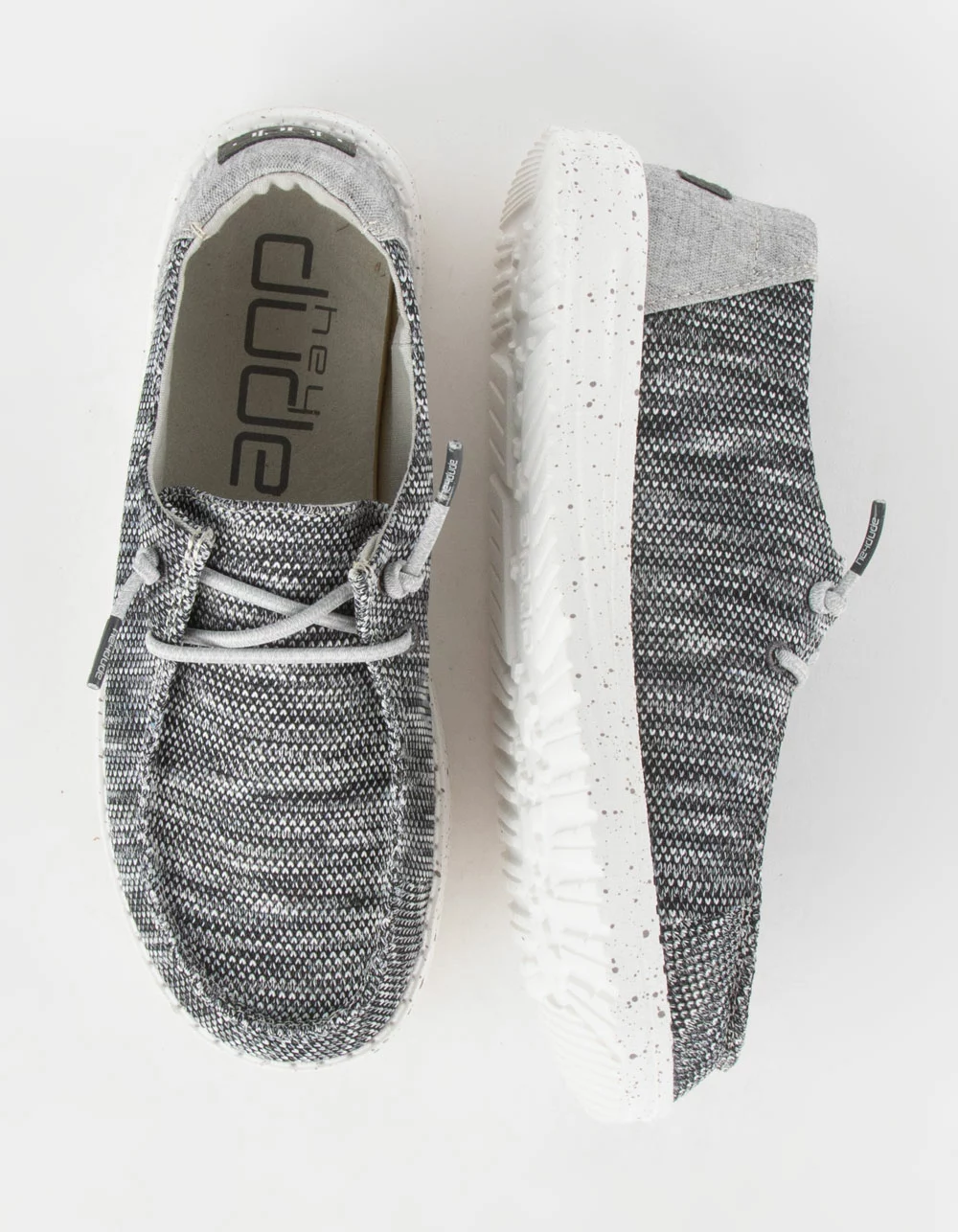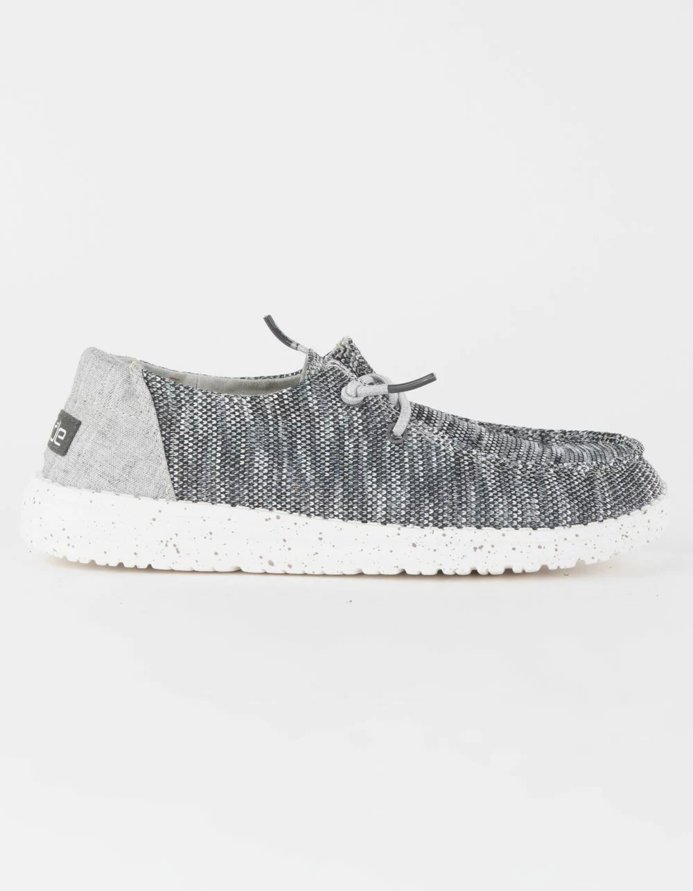 Hey Dude Wendy Sox Slip On Shoes. Our most popular moc meets sock-like comfort. The Wendy Sox collection showcases our classic style constructed in a stretch-polyester fabric without compromising support, made to hug your foot throughout. Built on an ultralight outsole and designed with our easy-on system, featuring no-tie elastic laces. Easy. breezy, on the go. Flex & Fold Technology. Stretch-polyester blend upper with contrasting heel detail. Contrasting, stretch-cotton lining. Leather-lined, removable insole. Easy to wash, air dry. Imported.