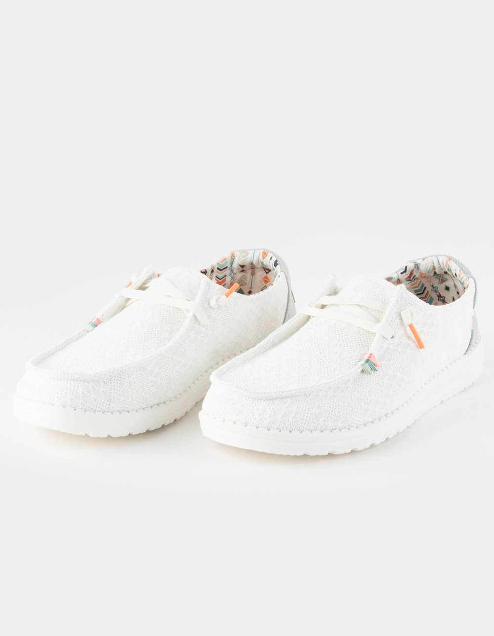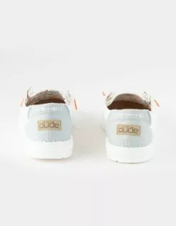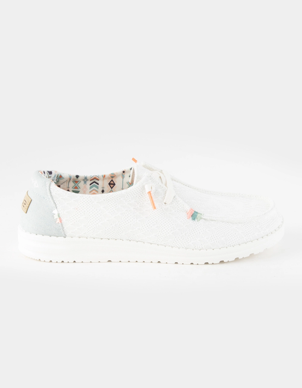 Hey Dude Wendy Shoes. Our most iconic moc meets washed denim materials, crochet, embroidery, and hand-stitched details that come together for a customized look. The Wendy Boho collection comes with our easy-on system, featuring cotton laces and an ultralight outsole to keep it comfy. So festival ready. Flex & Fold Technology. Lightly washed cotton-blend and crochet upper with colorful embroideries and boho-chic inspired details. Contrasting, cotton lining. Easy-On System with cotton laces. Ultralight outsole. Cork-lined, removable insole. Easy to wash, air dry. Imported.