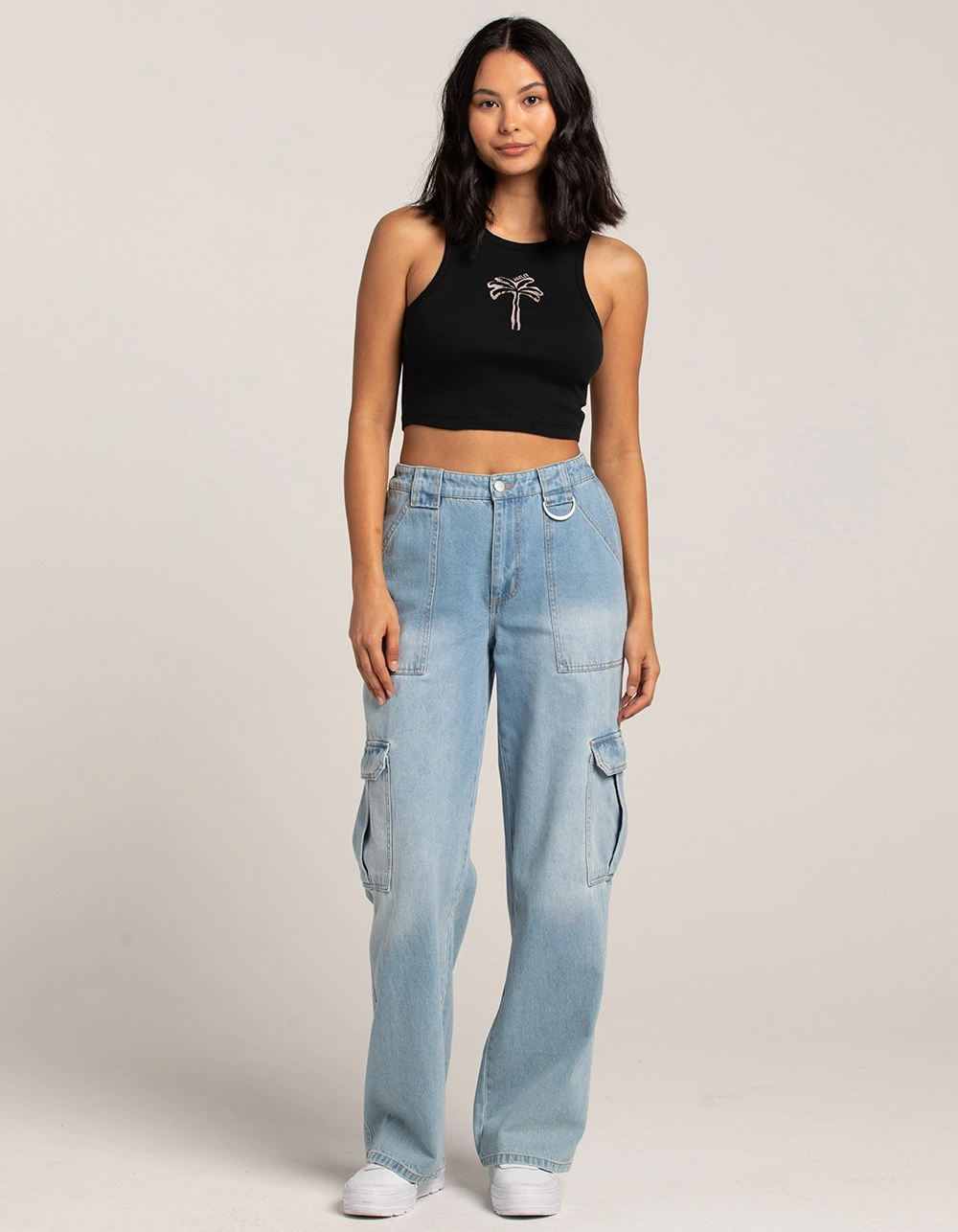 Hurley Coconut Crop Tank Top. Palm tree graphic screened on center front. Crewneck. Ribbed trim. Sleeveless. Form fitting. Cropped fit. 100% Cotton. Machine wash. Imported.