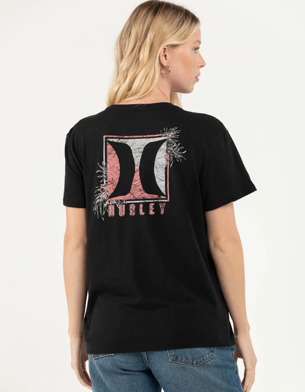Hurley Keena Relaxed Tee. Graphic on left chest. Large graphic on back. Ribbed crew neckline. Short sleeves. Oversized fit. 100% Cotton. Machine wash. Imported.