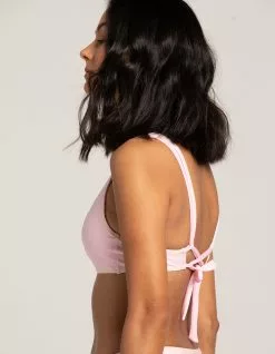 Hurley Max Solid Bralette Bikini Top. Solid print and contrast stitching. Scoop neckline. Adjustable shoulder straps that tie in the back. Removeable bra pads. 84% Nylon, 16% Spandex. Hand wash. Imported.