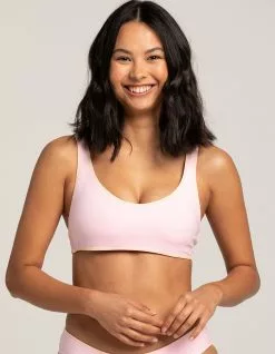 Hurley Max Solid Bralette Bikini Top. Solid print and contrast stitching. Scoop neckline. Adjustable shoulder straps that tie in the back. Removeable bra pads. 84% Nylon, 16% Spandex. Hand wash. Imported.