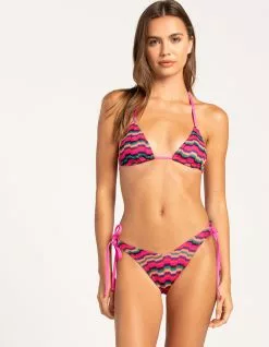 Hurley Zumba Stripe Texture Triangle Bikini Top. Allover stripe and knit texture. Adjustable neck and back ties. Slidable triangle cups to shift for a custom fit. Unpadded. Lined. Shell: 100% Polyester. Lining: 84% Recycled Nylon. 16% Spandex. Hand wash. Imported.