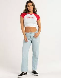 Hype And Vice Ohio State Raglan Tee. Graphic screened on center chest. Crewneck. Short sleeve. Cropped fit. 95% Cotton, 5% Spandex. Machine wash. Imported.