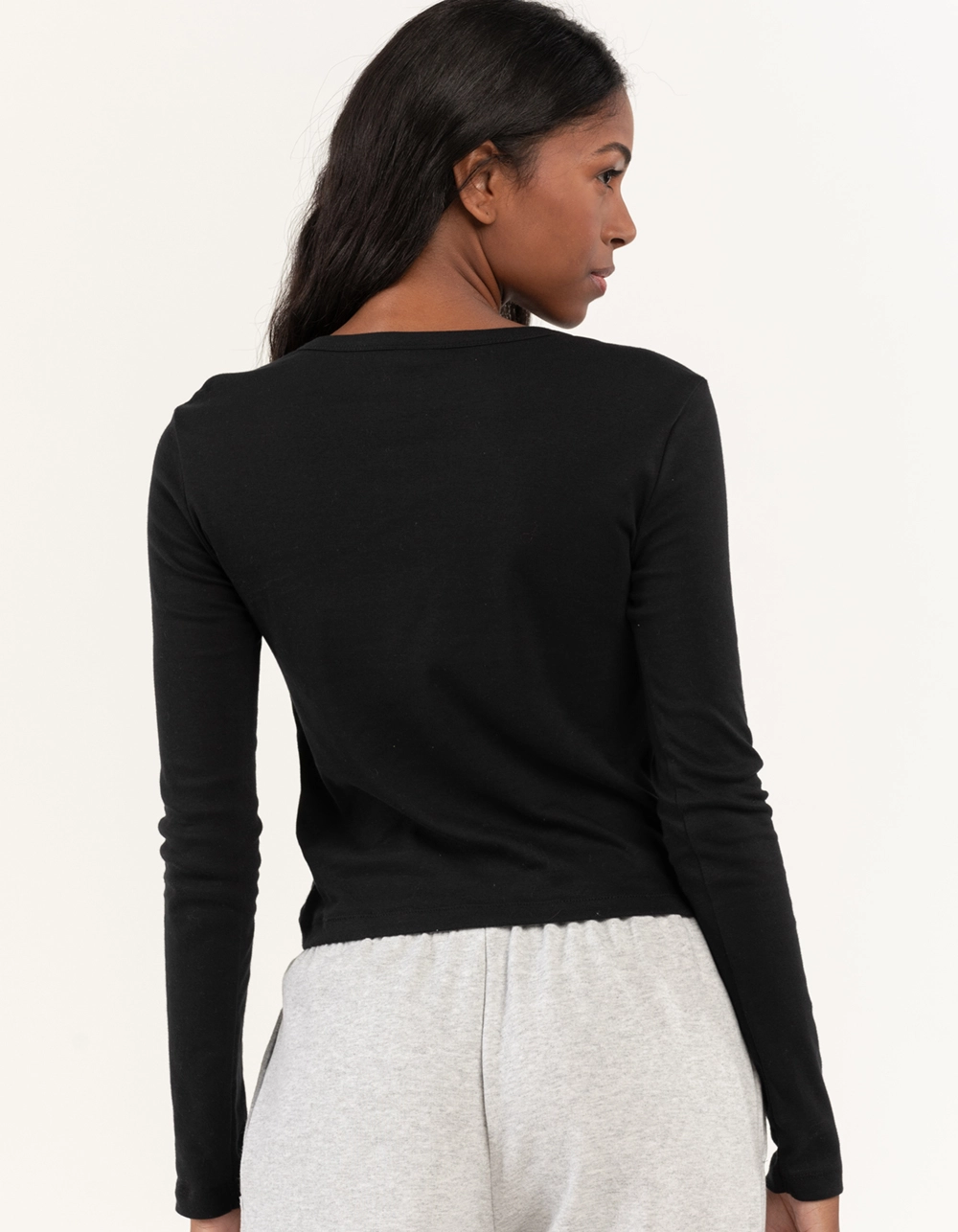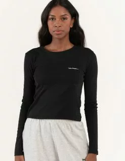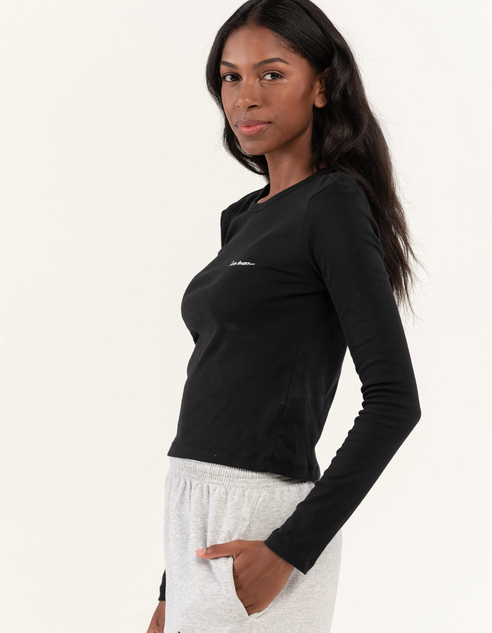 iets frans Baby Tee. Embroidery on left chest. Ribbed crew neckline. Long sleeves. Baby tee fit. 100% Cotton. Machine wash. Imported.