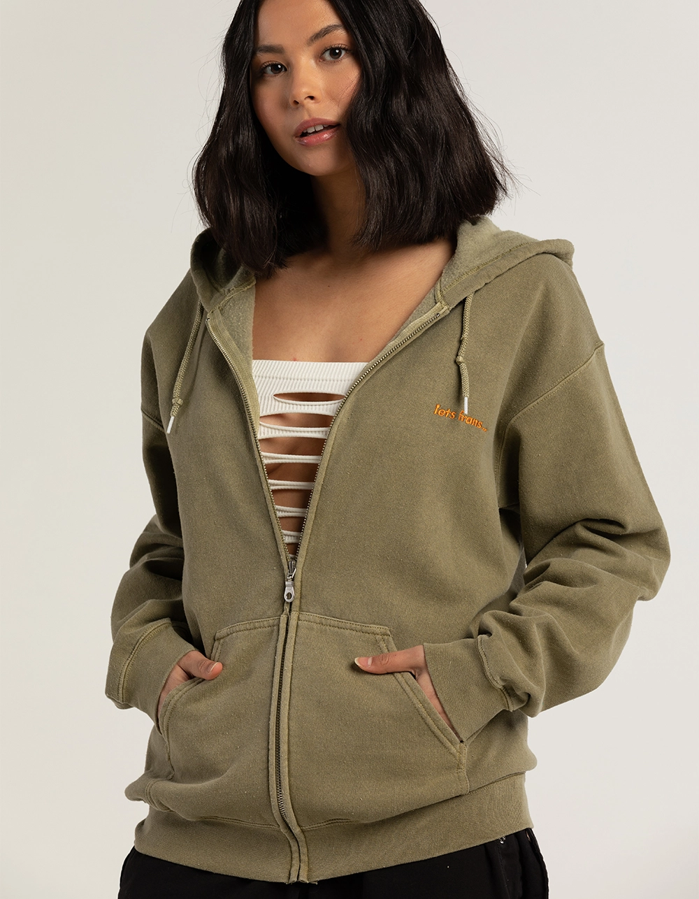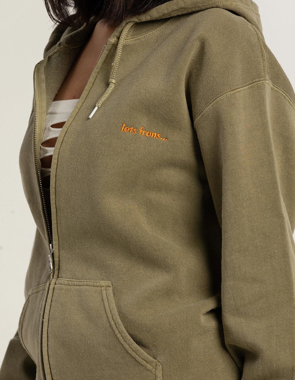 Iets Frans Zip-Up Hoodie. Zipper front. Logo embroidery on left chest. Drawstring hood. Cuffed long sleeves and hem. Fleece lining. Front pockets. 50% Cotton, 50% Polyester. Machine wash. Imported.