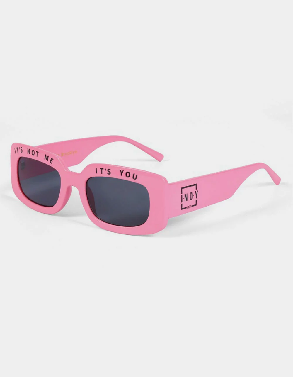 INDY It’s Not Me It’s You Sunglasses. When sassy meets glamour. We’ve crafted sunglasses that do all the talking, so you don’t have to. Ditch the ball and chain– level up with these snappy frames. PC + UV400 Sun Protection. Text is permanent. Includes a box, a protective case and a cloth for cleaning.