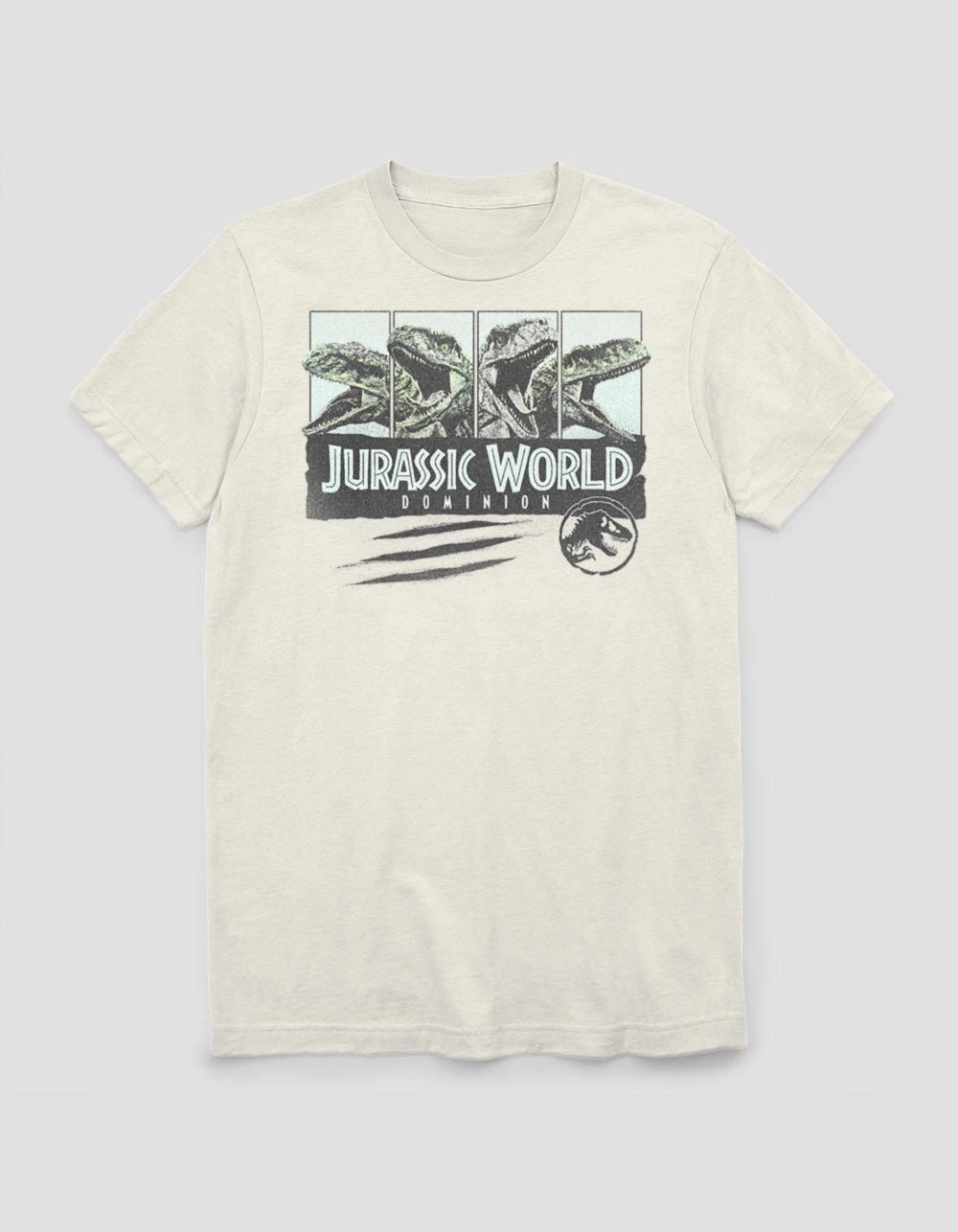 Join Owen Grady, Claire Dearing, Alan Grant, Ellie Sattler, and Ian Malcolm as they navigate a new world of dinosaurs existing amongst humans in this officially licensed Jurassic World Dominion t-shirt! 100% Cotton. Prewashed for minimal shrinkage. Machine washable. Printed in the U.S.A. This item is unisex fit and sizing.