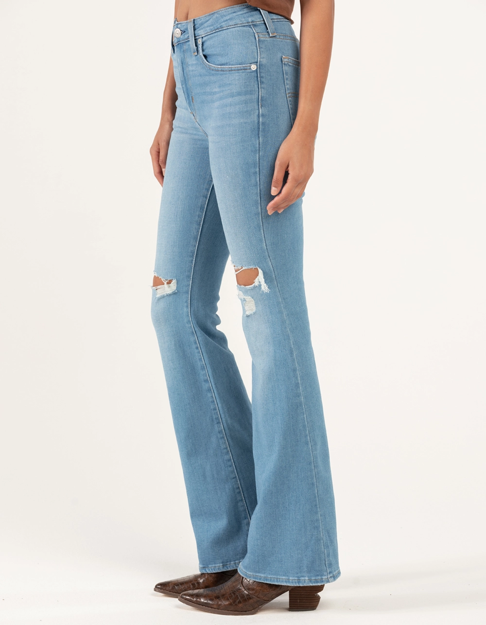 Levi’s 726 Light High Rise Flare Jeans. Our 726 High Rise features is designed with a slim fit through your hip and thigh before flaring at the knee. They’re designed to elongate your silhouette and make you feel as amazing as you look. For those days when skinny jeans won’t do. Features a waist-nipping high rise. Finished with a flared leg. Levi’s® Sculpt fabrication with Hypersoft for enhanced comfort with supportive stretch, making these our softest jeans ever. Slim through your hip and thigh. High rise. Flare hem. Zip fly. 5-pocket styling. 67% cotton, 27% polyester, 6% elastane. Machine wash. Imported.
