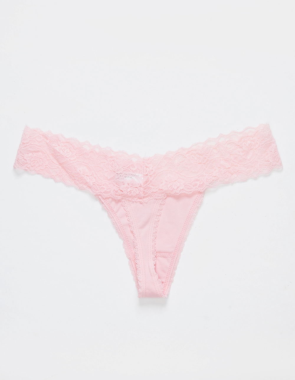Love Libby Lace Side Thong. Lace waistband and lace trim detailing. Lined gusset. 95% Cotton, 5% Spandex. Hand wash. Imported.