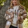 Love Tree Buffalo Plaid Shacket. Flat collar. Button front. Dual chest pockets. Button cuff sleeves. All over plaid print. Long sleeves. 100% Polyester. Machine wash. Imported.