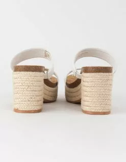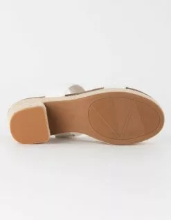 Madden Girl Emerson Platform Sandals. Slip on. Round toe. Espadrille style midsole. Approximate heel height: 3.25″. Approximate platform height: 1.25″. Imported.