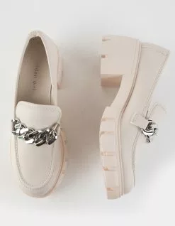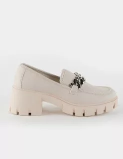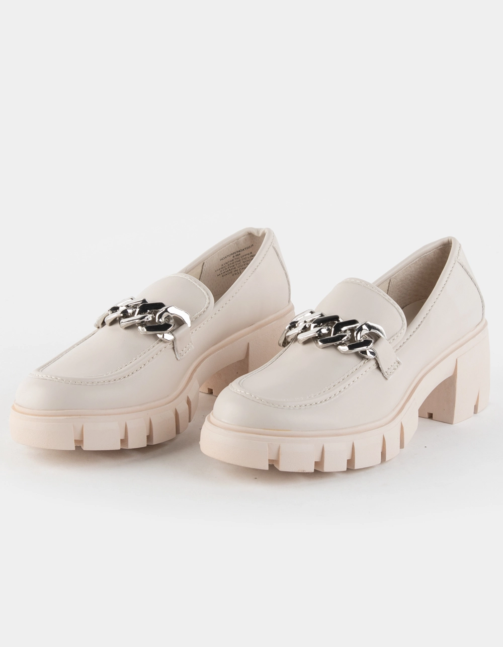 Madden Girl Hoxtonn Loafer. Leather upper. Lug sole. Chain detail on upper. Lug sole. Approx. 2.75″ Heel Height. Imported.