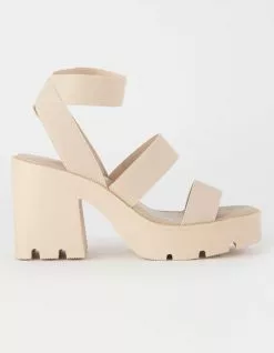 Madden Girl Templee Shoes. Strappy fabric upper. Slip-on design. Elasticized band on the ankle for a snug fit. Synthetic lining with a cushioned footbed. Open toe. Chunky block heel. TPR lug outsole. Heel Height: 3.75 in. Platform Height: 1.5 in. Imported.