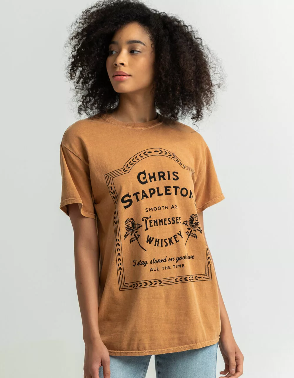 Chris Stapleton Whiskey Tee. Graphic on front. Ribbed crew neckline. Short sleeves. 100% Cotton. Machine wash. Imported.