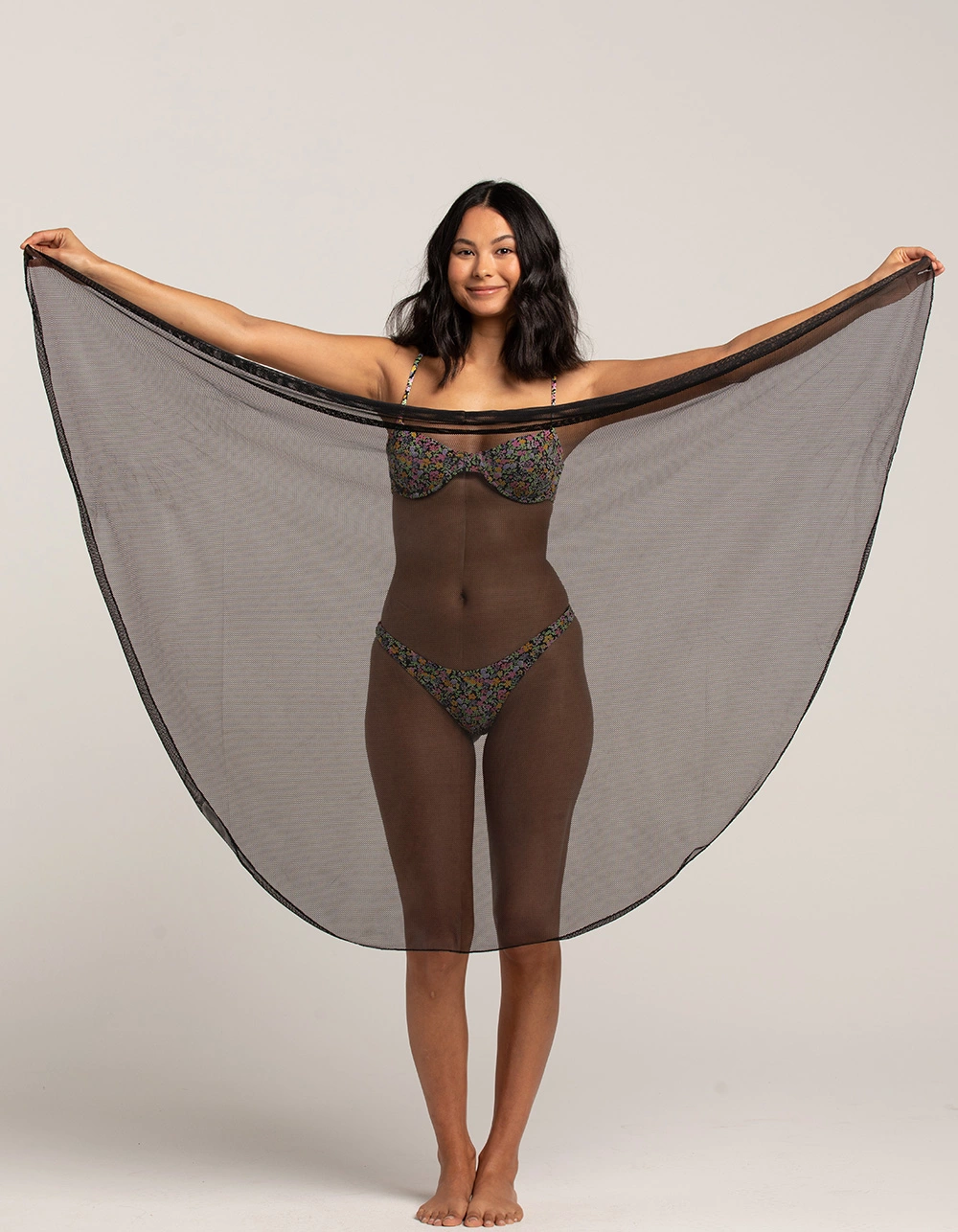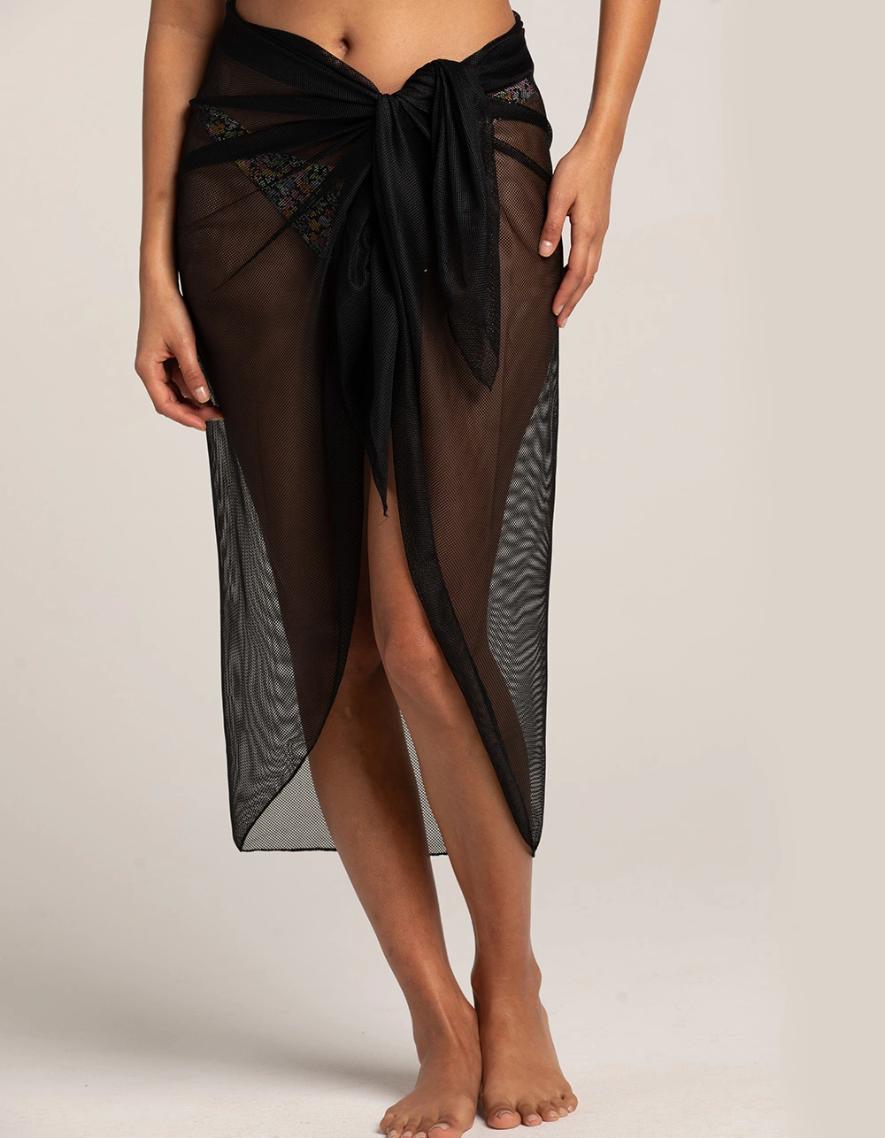 Mesh Sarong. A versatile staple for the summer. Mesh material. 100% Polyester. Machine wash. Imported.