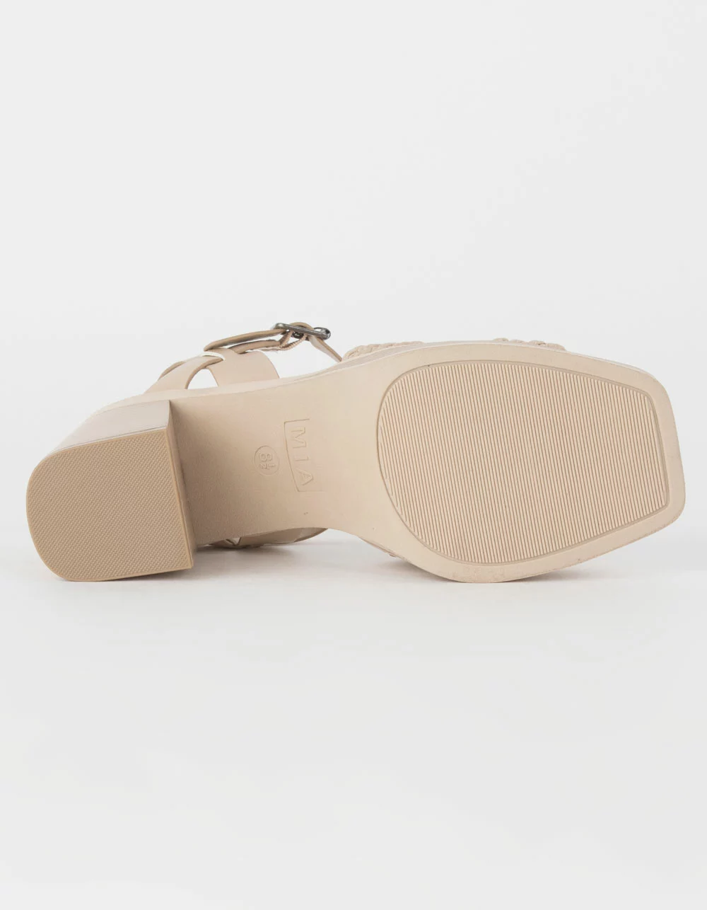 Mia Rayan Strappy Heel Sandals. Your new spring staple. Meet Rayan, a classy yet versatile style crafted with a vegan leather upper strap and buckle ankle closure. Featuring MIA’s signature anatomically contoured footbed and 3.3 inch heel. Dress her up with your favorite sundress, or dress her down with your favorite denim jeans. Imported.