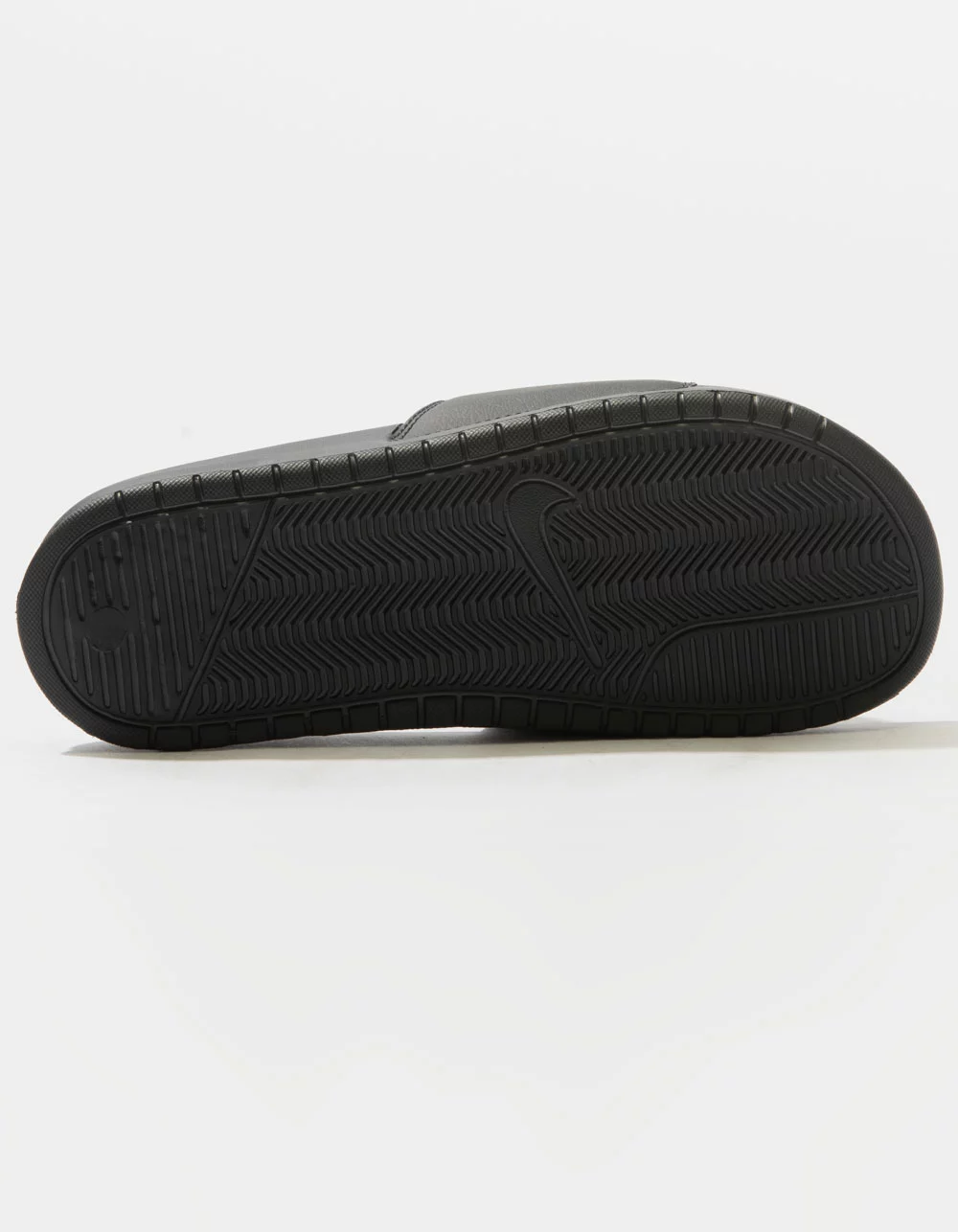 Nike Benassi slide sandals. Features a lined upper with a bold logo for plush comfort and an athletic look. A foam midsole and outsole provide lightweight impact protection. Imported.