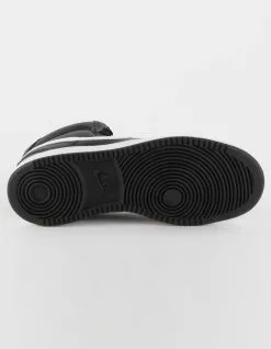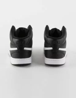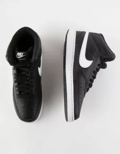 Nike Court Vision Mid Shoes. Inspired by the trends of the ’80s, the NikeCourt Vision Mid is a hybrid shoe with retro basketball details that have been reinvented for the modern era. Using a combination of leather, synthetic leather and rubber, the design draws inspiration from mid-1980s basketball shoes. A rubber cupsole adds durability and traction. Leather, synthetic leather and fabric upper. Embossed Swoosh design and branding details. Imported.