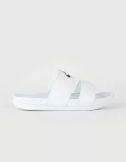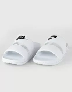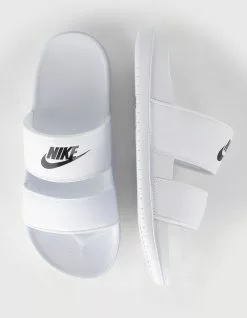 Nike Offcourt Duo Slide Sandals. Bringing a fresh look to the classic slide, the Nike Offcourt Duo features twin straps for a chic look you can wear with jeans or leggings and everything in between. Its foam footbed feels unbelievably soft while its plush straps are lined with cloud-like fabric that rolls over the top to help eliminate hotspots. The micro-textured footbed helps keep your foot in place while the sole adds traction that lasts. Imported.