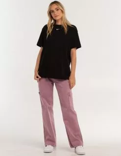 Nike Sportswear Essential Oversized Tee. Ribbed crew neckline. Short sleeves. Nike logo embroidered at center chest. Loose fit. 100% cotton. Machine wash. Imported.