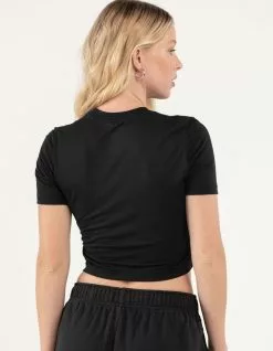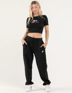 Nike Sportswear OC 2 Boxy Tee. Graphic on front. Ribbed crew neckline. Short sleeves. Crop hem. Slim fit. 49% Modal 49% Polyester 2& Spandex. Machine wash. Imported.