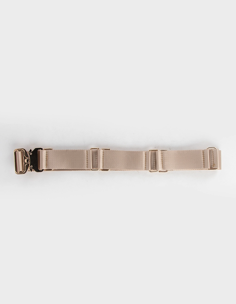 Nylon Metal Clip Belt. Gold tone buckles and metal clip closure. 100% Polyurethane. Imported.