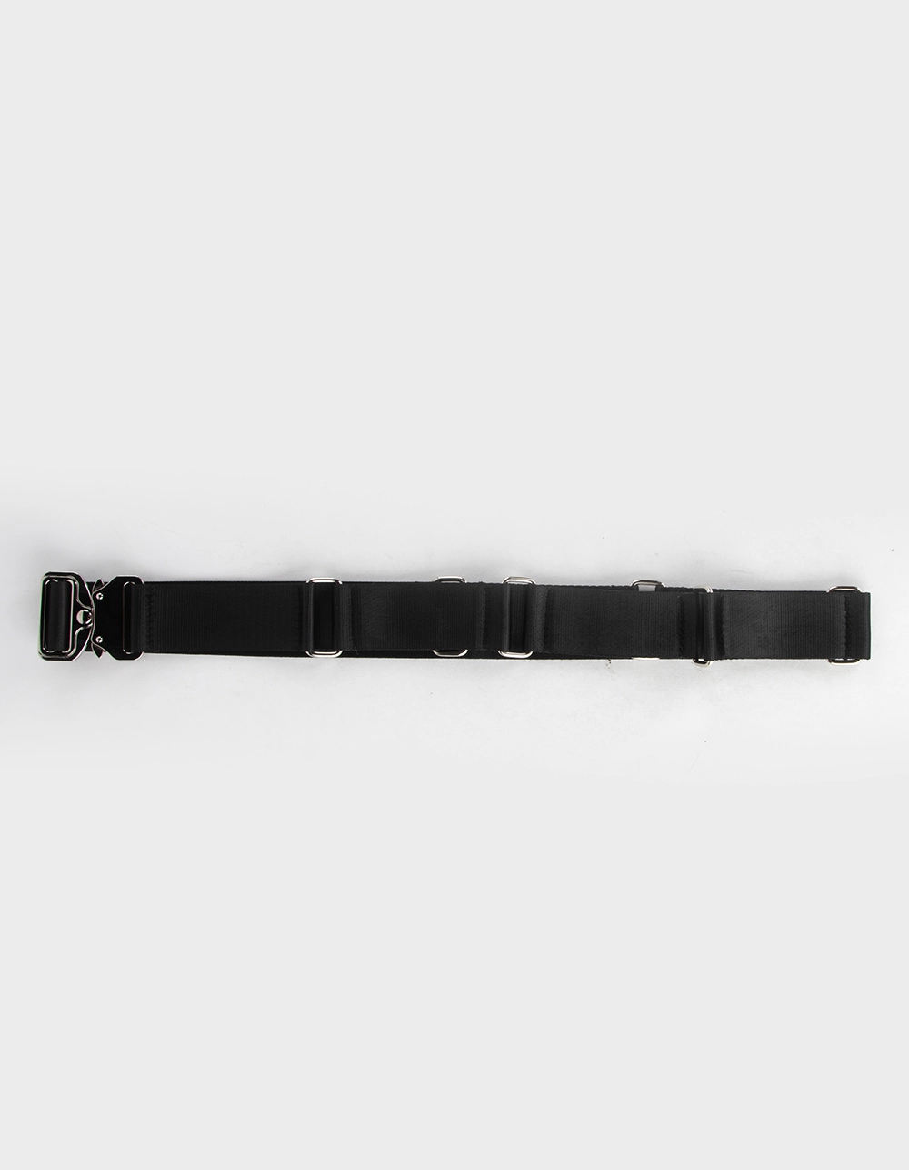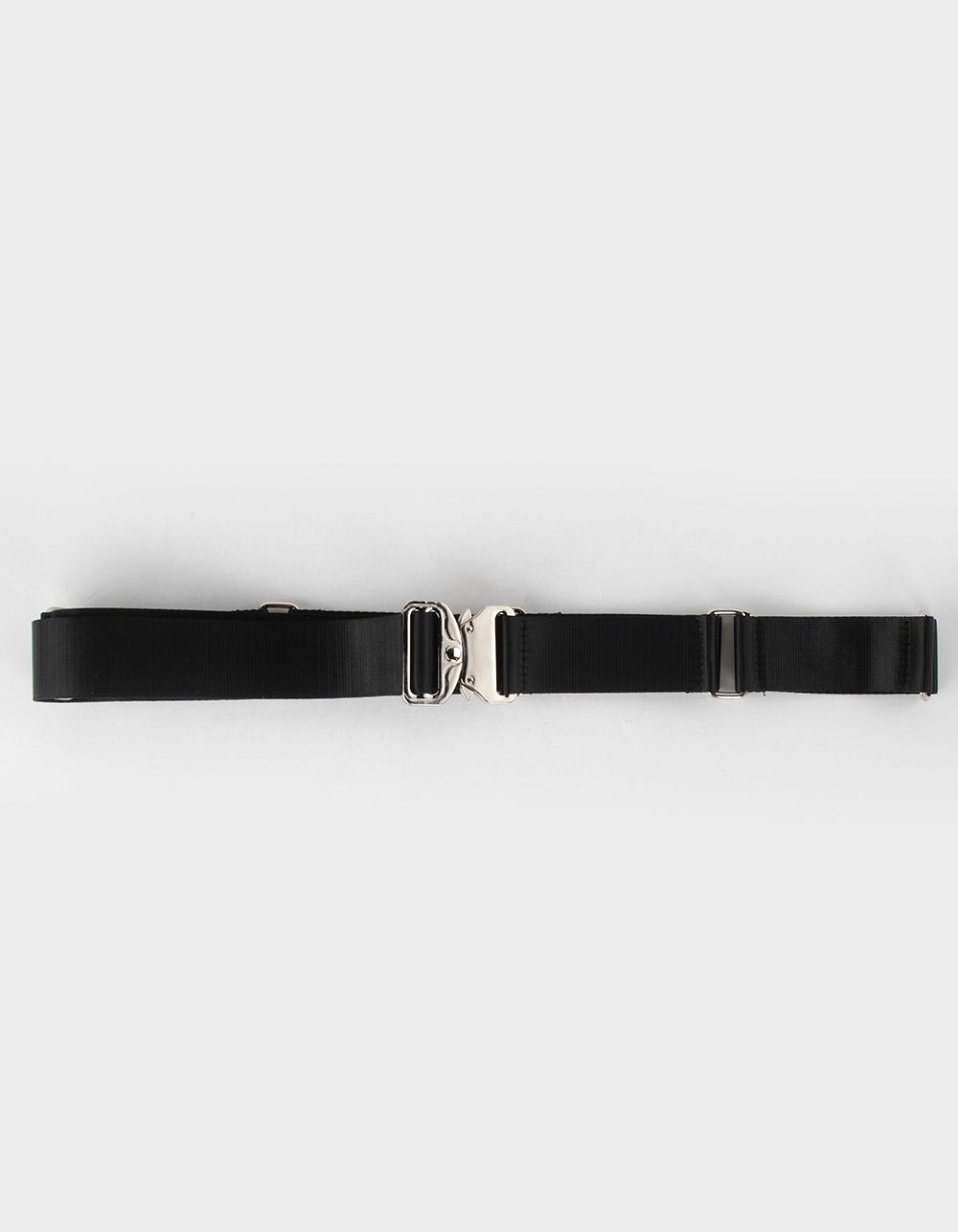 Nylon Metal Clip Belt. Silver tone buckles and metal clip closure. 100% Polyurethane. Imported.