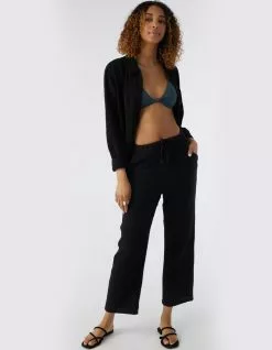 O’Neill Brenda Pants. Cute and casual woven pants that have a wide leg fit, elastic waist with drawcord and soft, comfortable feel. 26″ inseam. 12 1/4″ front rise. Front hip pockets. 100% Cotton. Machine wash. Imported.