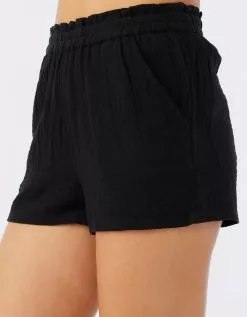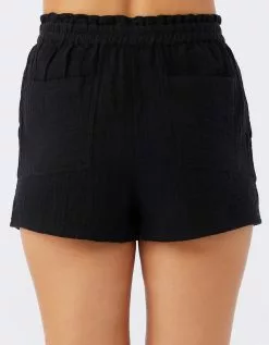 O’Neill Carla Pull On Shorts. Features a solid color design, front slash pockets and paperbag waistband detail. Solid color wash. 10 1/4″ front rise. Approximate inseam: 2″. 100% Cotton. Machine wash. Imported.