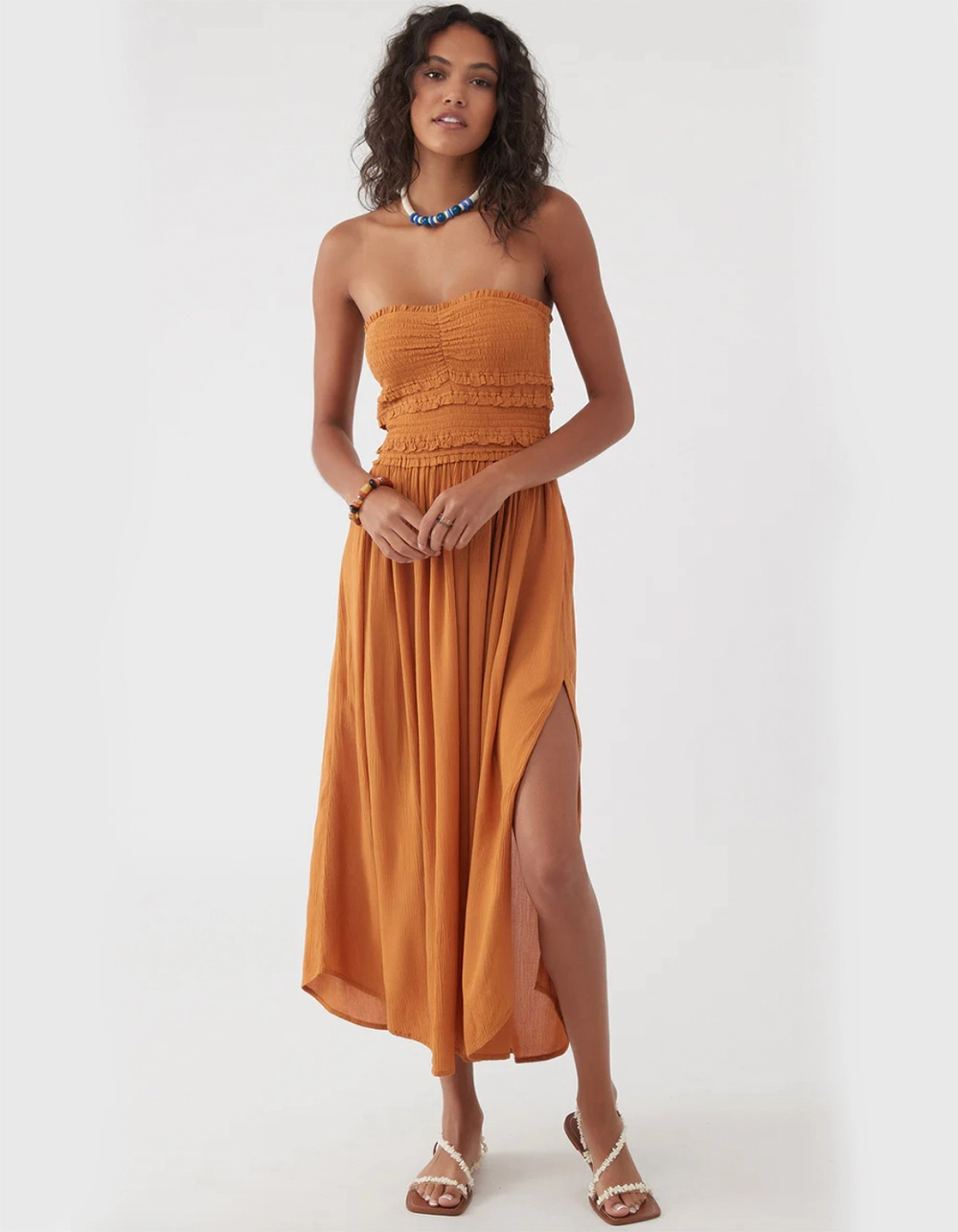 O’Neill Devyn Midi Dress. Cute and flowy strapless dress that features a ruffle hem detail and solid color wash. Approximate length: 42″. Flowy fit. 100% Viscose. Imported.
