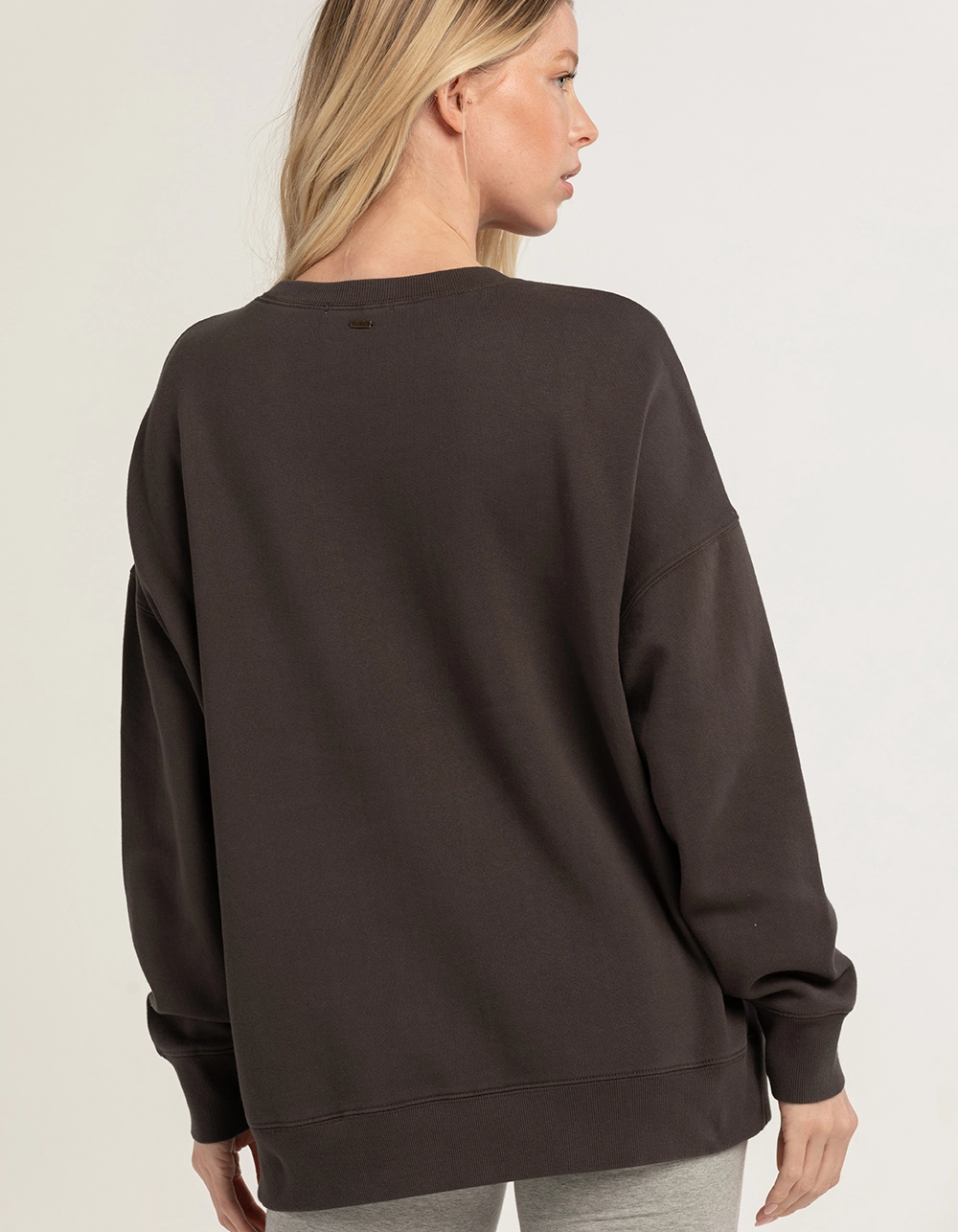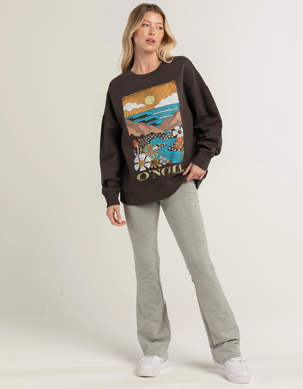 O’Neill High Road Oversized Crew Sweatshirt. Large graphic screened on front. Ribbed crew neckline. Cuffed long sleeves and hem. Fleece lining. Oversized fit. 100% Cotton. Machine wash. Imported.