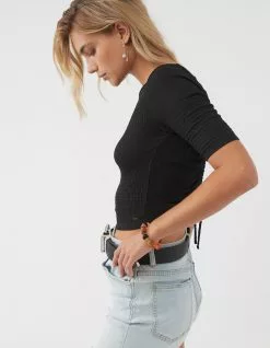 O’Neill Kitsy Top. Lightweight knit top that features a solid color design, back cutout detail and skimmer length fit. Skimmer length. Functional back opening ties. Short sleeves. 95% Cotton 5% Elastane. Machine wash. Imported.