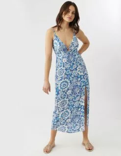 O’Neill Myah Midi Dress. Sweet and stylish woven midi dress that has a comfortable fit, front ring detail and allover print. 47.5″ in length.. Front ring detail. Hidden zip closure. Adjustable shoulder straps. Allover print. 100% Viscose. Imported.