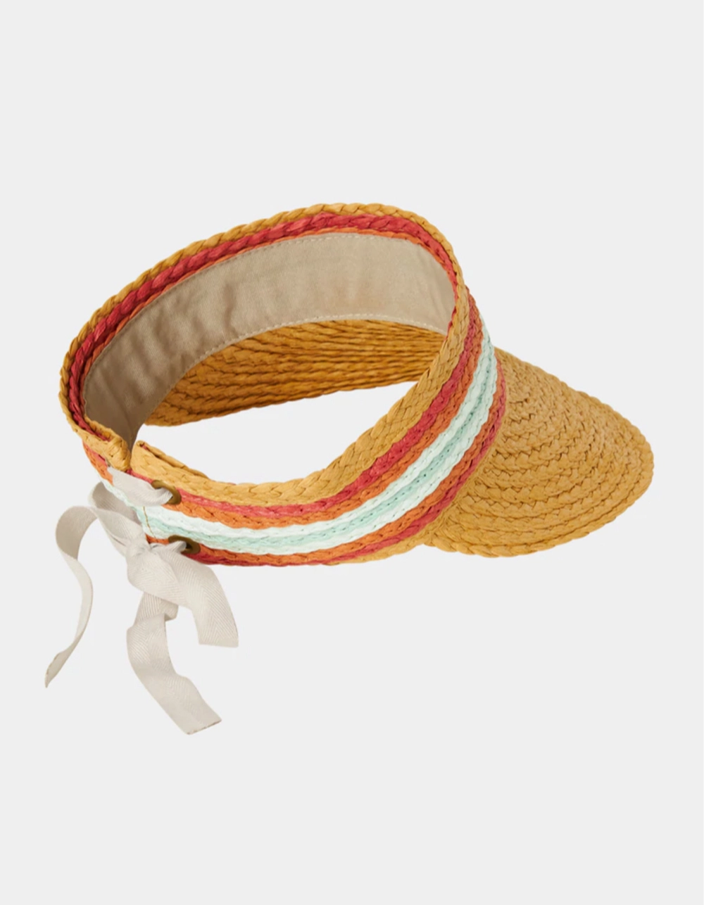 O’Neill Paige Visor. Crown stripe detail. Lace up back closure. 5″ Long visor, 2″ Crown height. 100% Paper raffia. Imported.