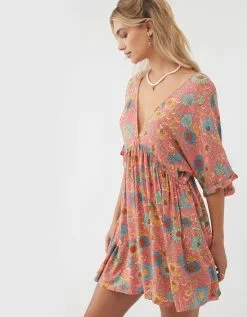 O’Neill Rosemary Belize Babydoll Dress. Effortlessly styled woven mini that has an allover print design, dolman sleeve detail and ties at the back. 32.5″ in length. Dolman sleeves. On seam pockets. Ties at back of neck. 100% Viscose. Imported.