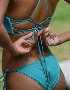 O’Neill Saltwater Solids Huntington Bralette Bikini Top. Just beachy. This essential bikini top has a strappy back design and low tie detail. Saltwater Solids Collection. Removable padding. Strappy back with self tie. Metal logo badge. 85% Polyamide 15% Elastane. Machine wash. Imported.