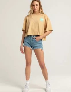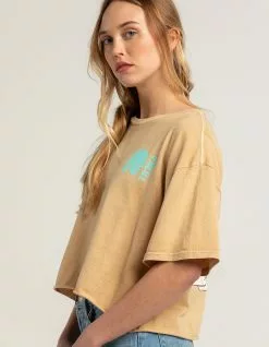 O’Neill Sea Oversized Crop Tee. Graphic screened on left chest. Large graphic on back. Ribbed crew neckline. Short sleeve. Loose fit. Cropped. Raw edge hem. 100% Cotton. Machine wash. Imported.