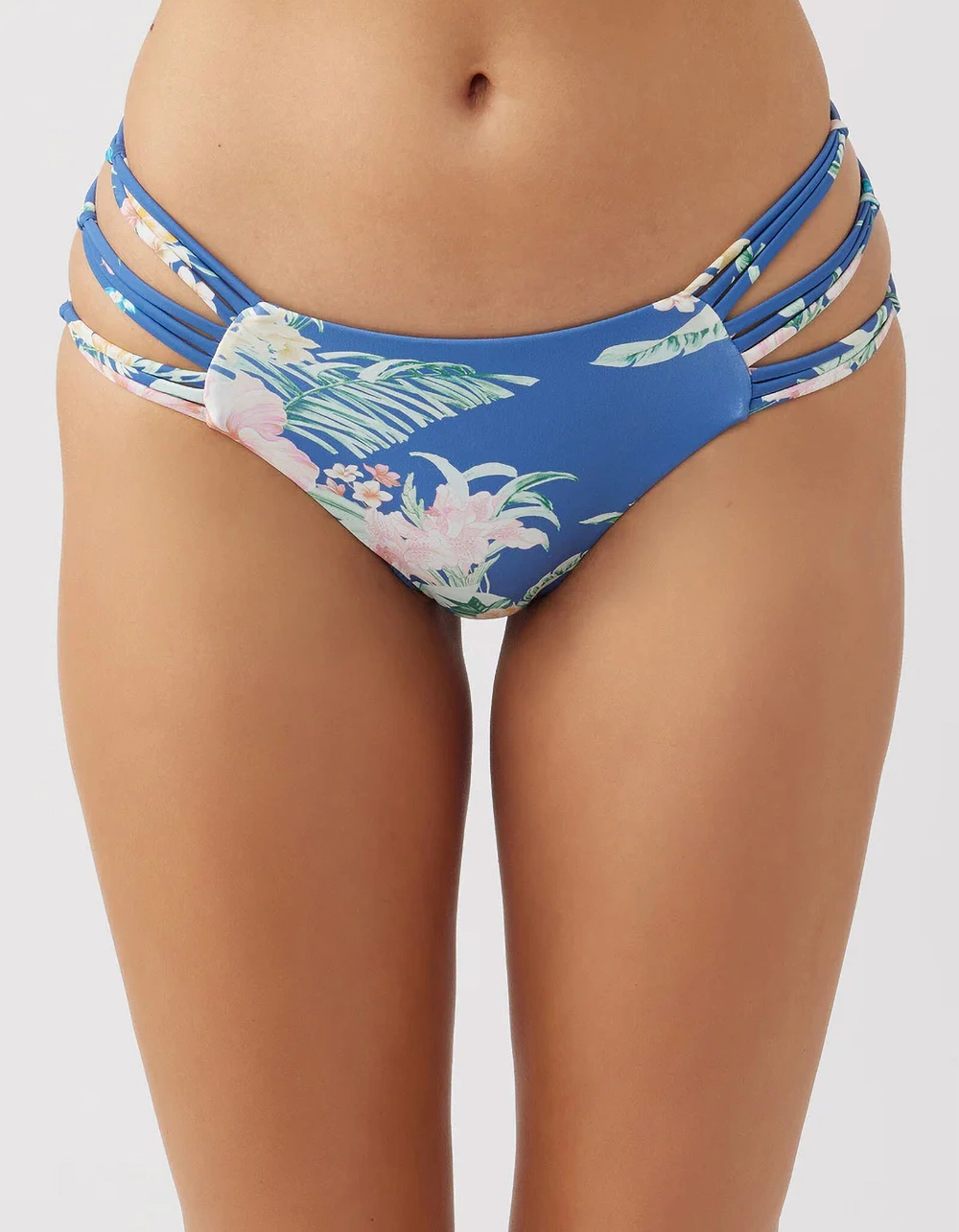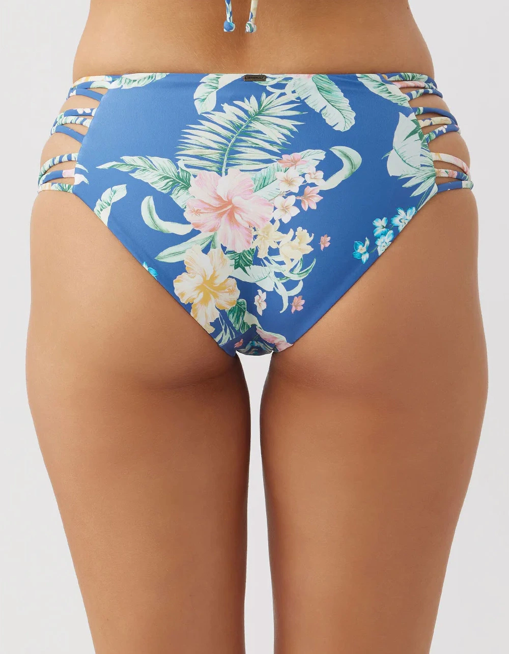 O’Neill Tulum Tropical Bikini Bottoms. Get some sun or take a swim in this colorful bikini bottom. It has a full coverage fit, multi-strap detail and is made from recycled materials. Full coverage. Mid rise. Allover print. Clean finish. 82% Recycled Polyamide, 18% Elastane. Hand wash. Imported.