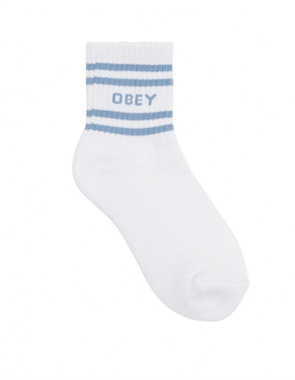 Obey Coop Crew Socks. Athletic rib socks. Intarsia striped Obey logo. Cushioned toe and heel. Machine wash. Imported.