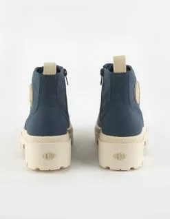 Palladium Pallabase Twill Boots. An elevated conscience stays above the noise. That’s the feeling being the Pallabase Twill, a higher level of feminine sophistication in a package that is clearly Palladium. The heel counter of the chunky outsole has been made higher for a lifted look, and the durable twill upper has a discrete side zip entry. A refined boot for those who take the high road. 100% Vegan with no animal product in the upper including the glue. Twill 100% cotton. Canvas in 100% cotton. Die cut EVA + EVA cup – cover in 100% polyester Non-removable. Imported.